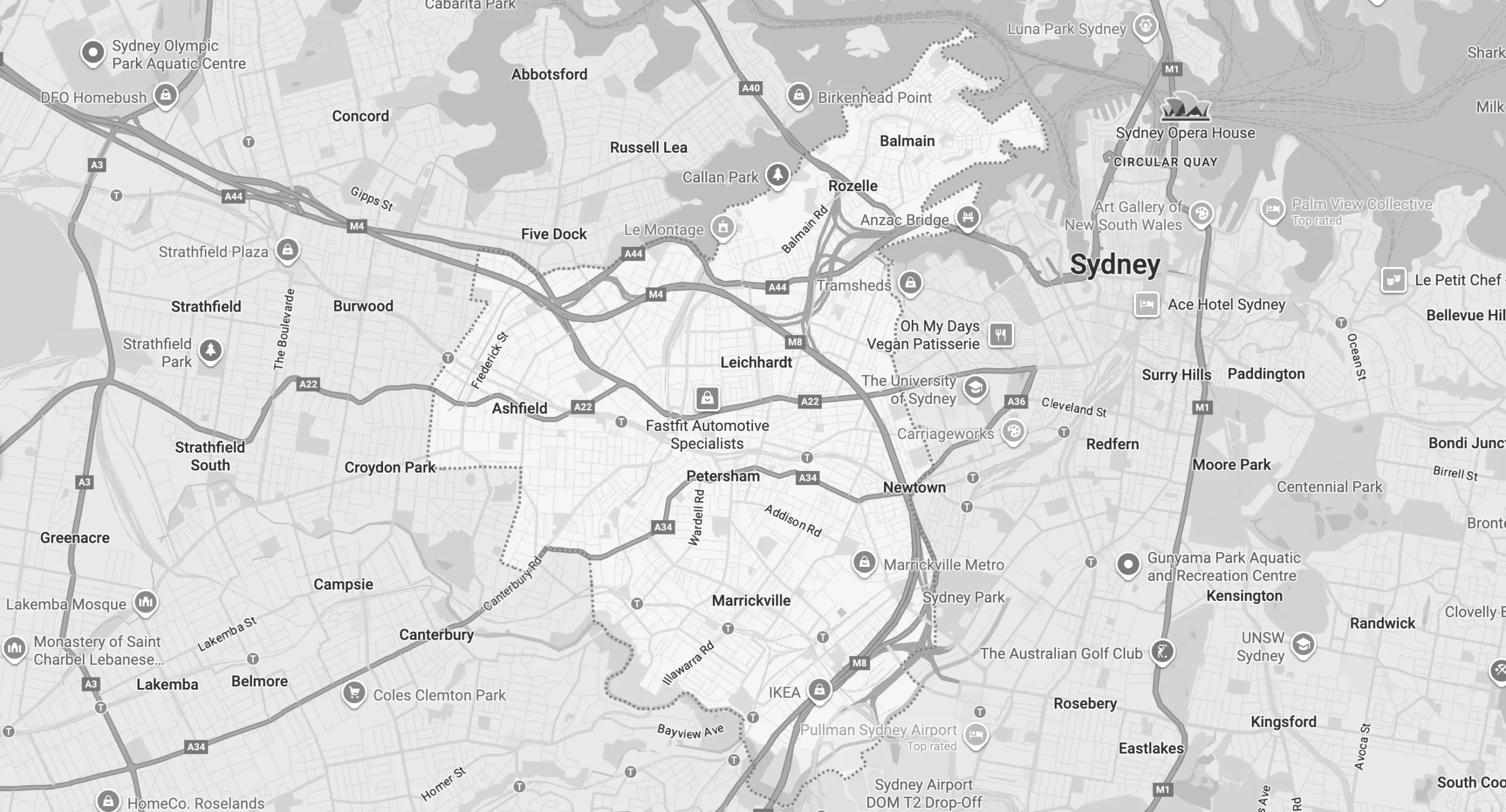 The Bay Run, Marrickville breweries, Enmore Theatre, and waterfront parks along Iron Cove.